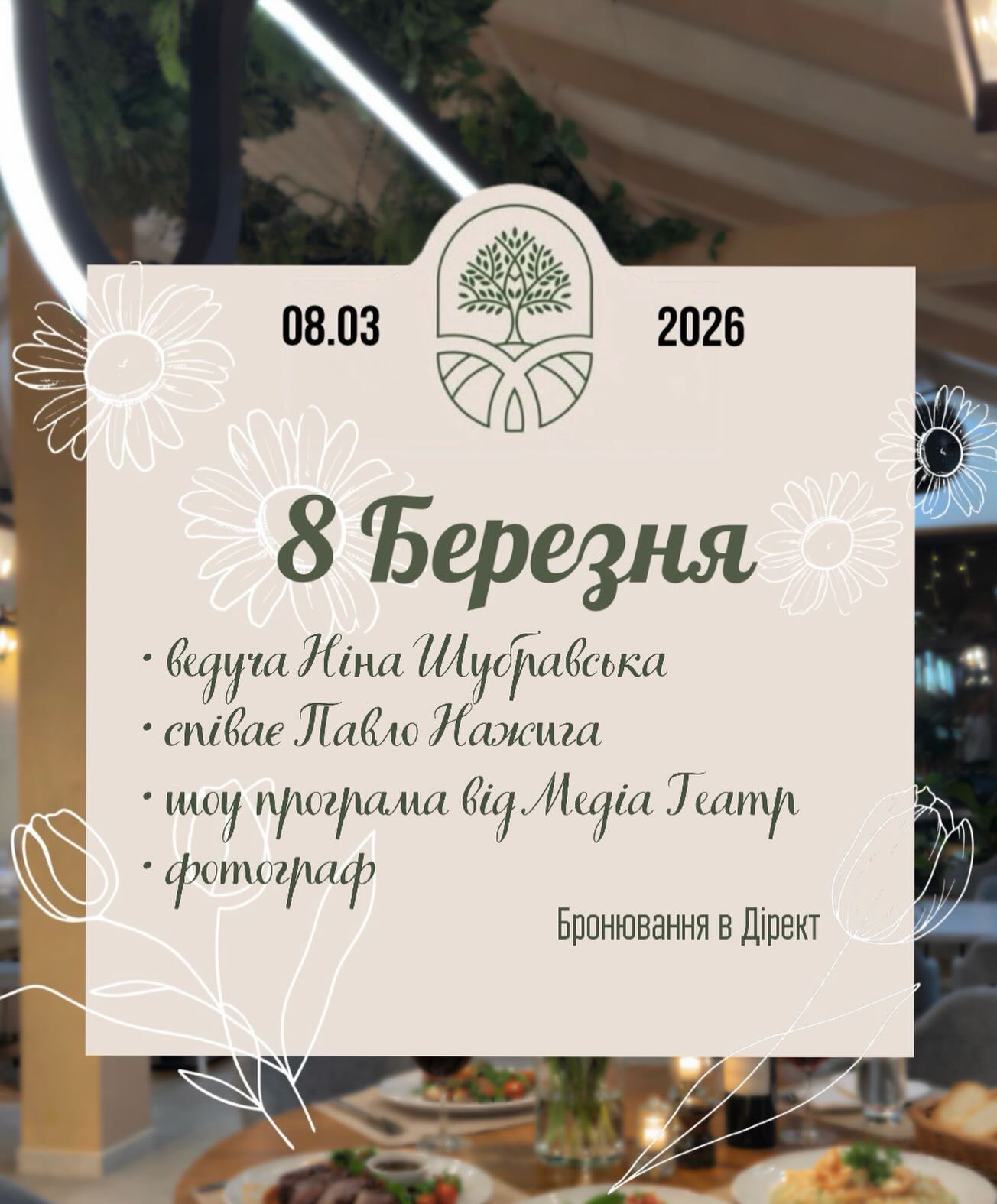 Запрошуємо провести цей особливий вечір у атмосфері краси, натхнення та весняного настрою.