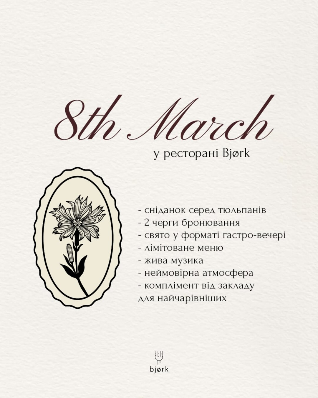 8 березня запрошуємо на особливий день у форматі гастро-вечері.
