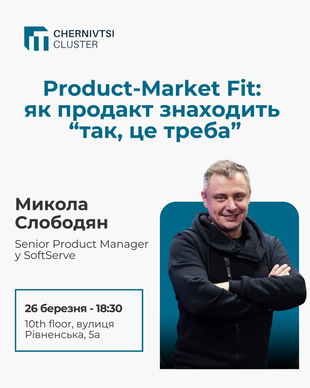 Запрошуємо вас на нову подію від Чернівецького ІТ Кластера, де говоритимемо про один із ключових викликів для кожного продукту — пошук справжнього Product-Market Fit.