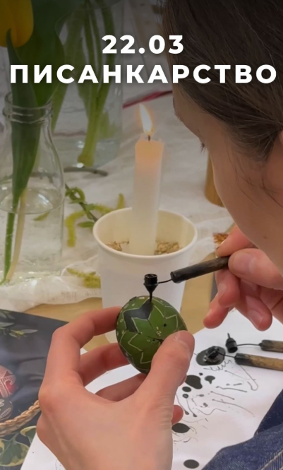 Під керівництвом майстрині ви дізнаєтесь про символіку традиційних орнаментів, освоїте техніку воскового розпису та створите власну писанку, яку заберете додому як памʼять і оберіг.