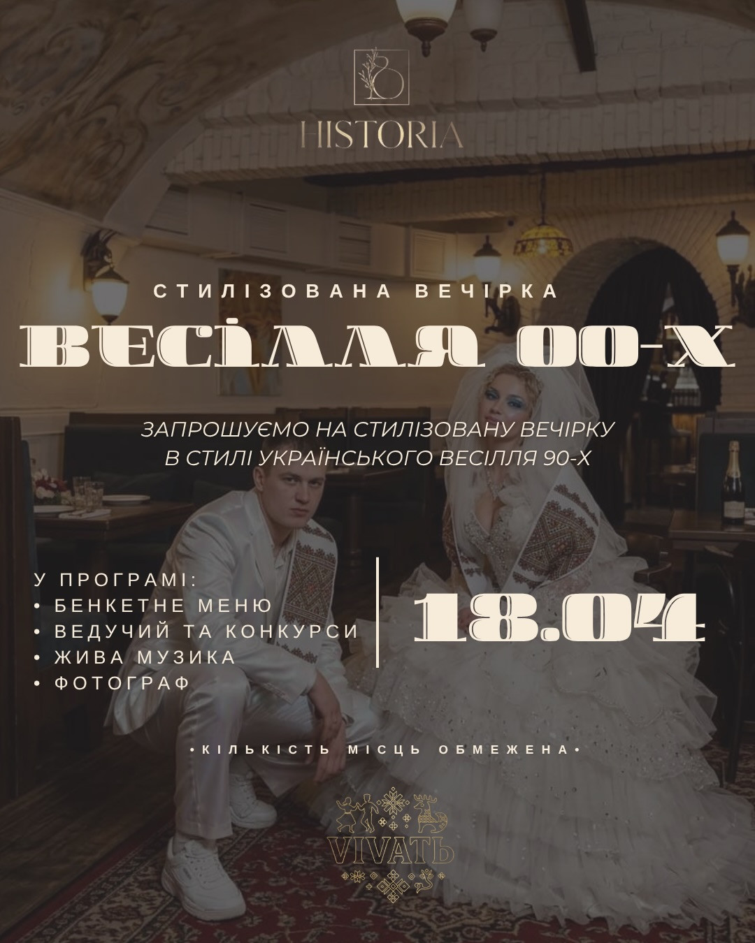 Ми готові повернути вам ці емоції! Запрошуємо на найнеочікуванішу подію цієї весни — СТИЛІЗОВАНУ ВЕЧІРКУ "ВЕСІЛЛЯ 00-Х"!