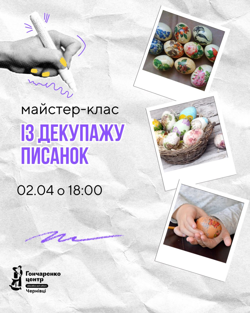 Майстер-клас із декупажу писанок у місті Чернівці